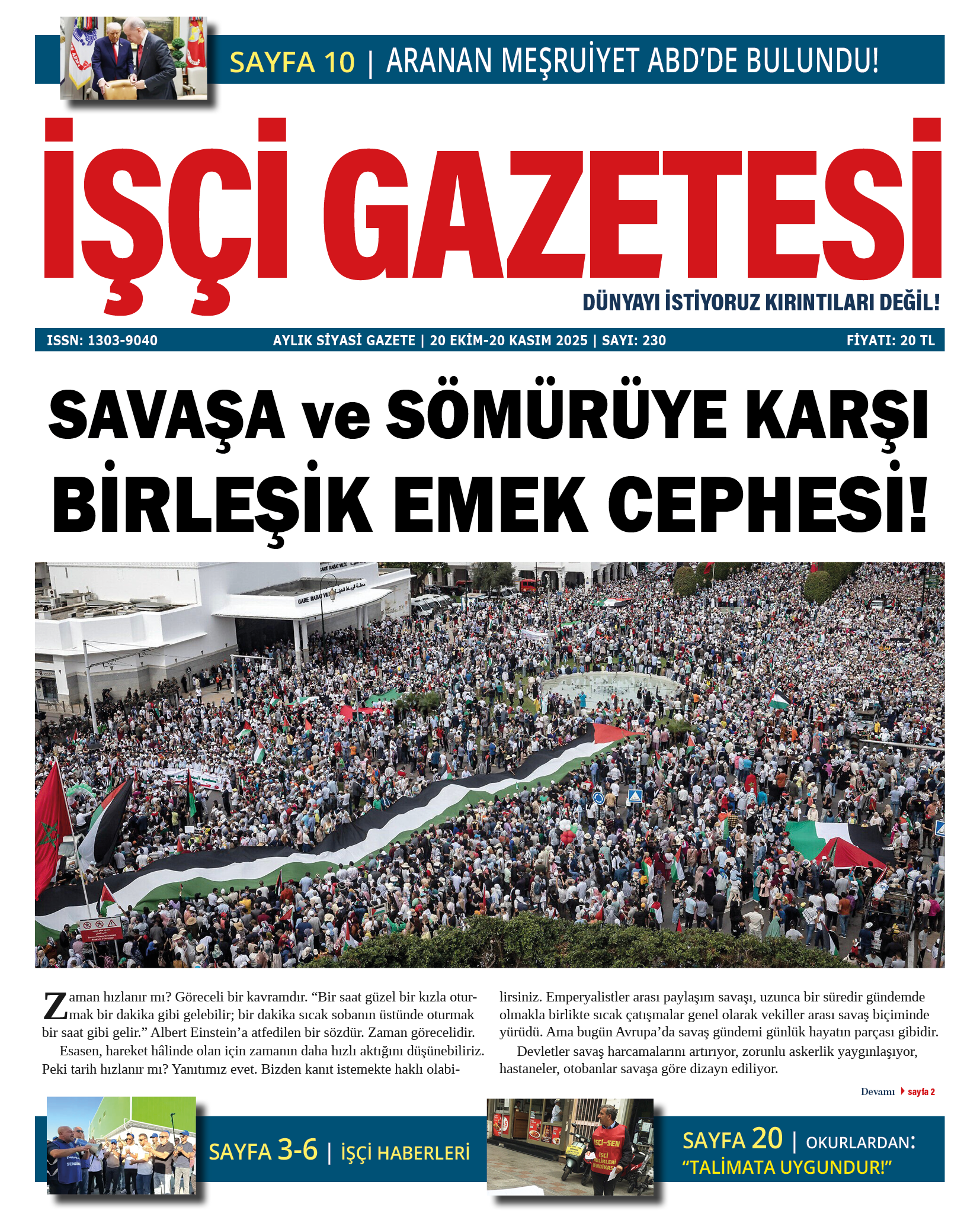 Manşet: SAVAŞA VE SÖMÜRÜYE KARŞI BİRLEŞİK EMEK CEPHESİ!