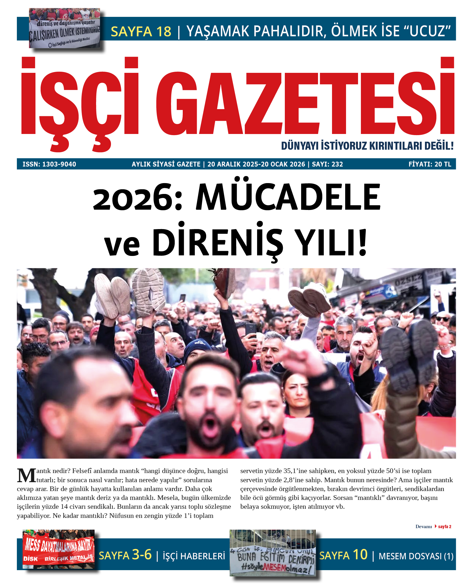 Manşet: 2026: MÜCADELE VE DİRENİŞ YILI