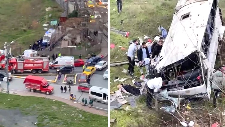 İstanbul’un Esenyurt ilçesinde yağışlı havada kontrolden çıkan işçi servisi boş araziye devrildi. Kazada 5 işçi yaşamını yitirirken, 2’si ağır 6 işçi yaralandı.