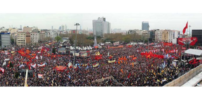 İşçi sınıfı, tüm güçleri ile, sendikaları aşarak, Taksim yasağını kırmak zorundadır. Taksim 1 Mayıs alanı olarak tescillenmiştir. Bundan vazgeçenler, toplu sözleşme haklarını da yok edenler, işçilerin grev haklarını da elinden alan iktidarı seyredenlerdir.