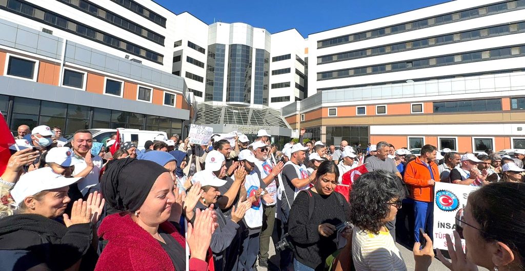 Üniversite hastanesi önünde yapılan basın açıklamasını Türkiye Sağlık ve Sosyal Hizmet İşçileri Sendikası (Sağlık-İş) Genel Sekreteri Adem Sarıçoban yaptı. Eyleme sendikanın Kocaeli şube yöneticileri, Türk-İş 1. Bölge Yöneticileri, Petrol-İş Sendikası, Harb-İş Sendikası ve Demiryol-İş Sendikası şube yöneticileri de katıldı.