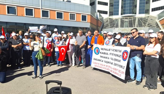 Kocaeli Üniversitesi’nde çalışan sağlık işçileri, dokuz aylık toplu sözleşme farklarının taksitle ödenmek istenmesine karşı yarım günlük iş bırakma eylemi yaptı…